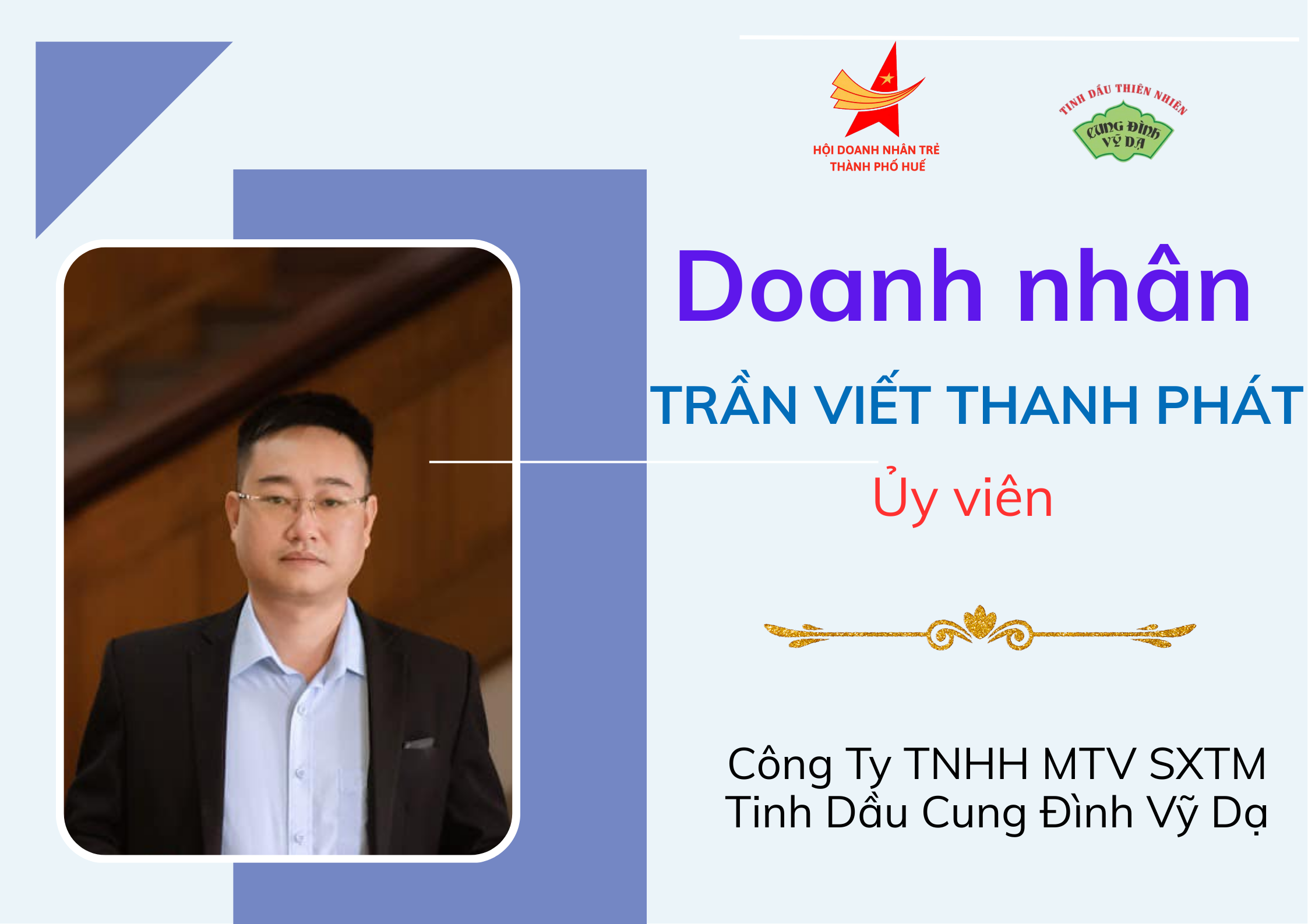 Doanh nhân TRẦN VIẾT THÀNH PHÁT – Công Ty TNHH MTV SXTM Tinh Dầu Cung Đình Vỹ Dạ