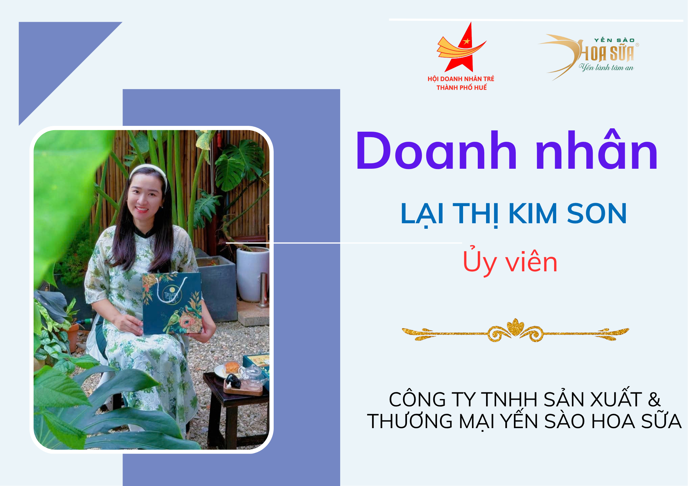 Doanh nhân LẠI THỊ KIM SON – CÔNG TY TNHH SẢN XUẤT & THƯƠNG MẠI YẾN SÀO HOA SỮA