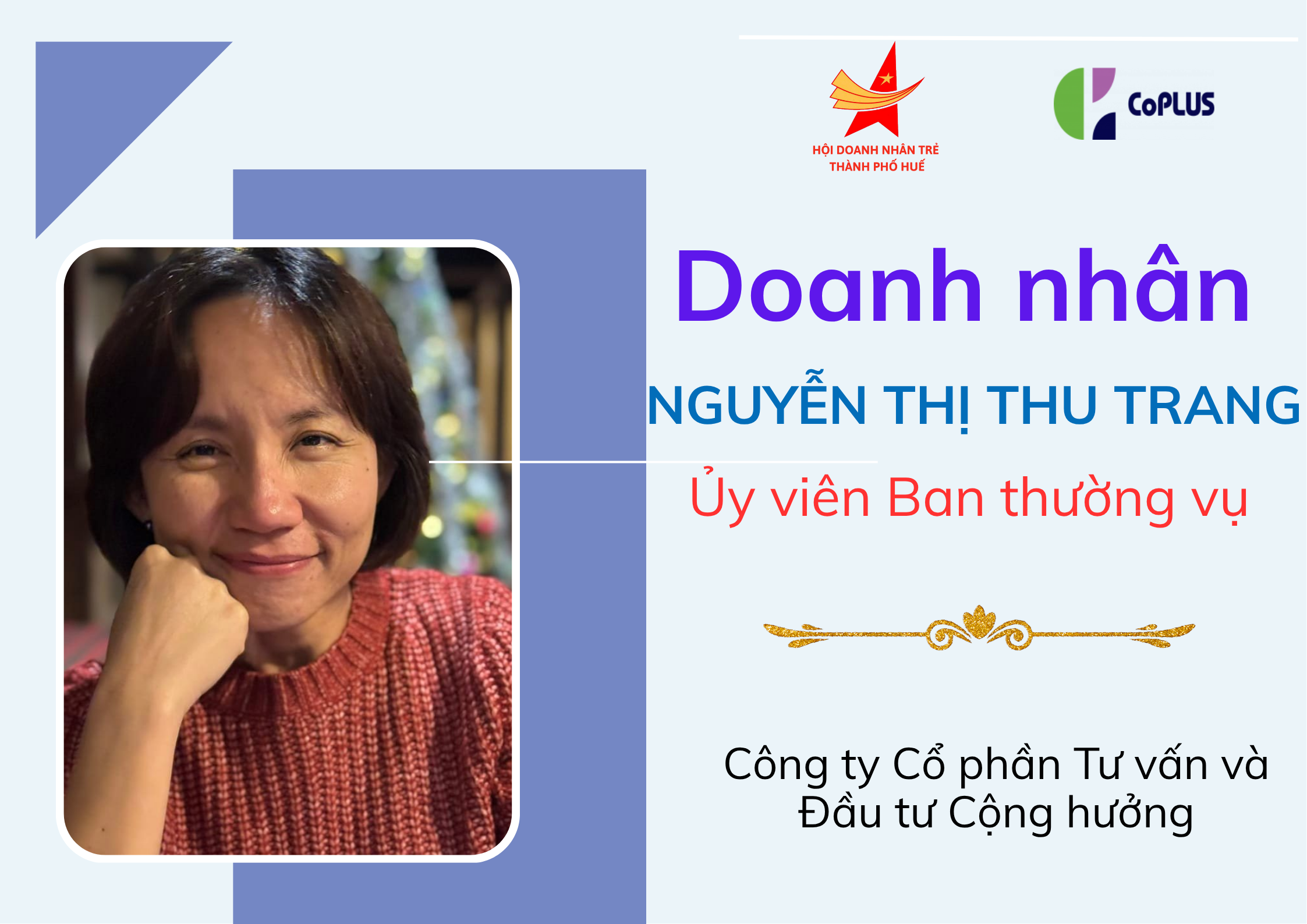 Doanh nhân NGUYỄN THỊ THU TRANG – Công ty Cổ phần Tư vấn và Đầu tư Cộng hưởng