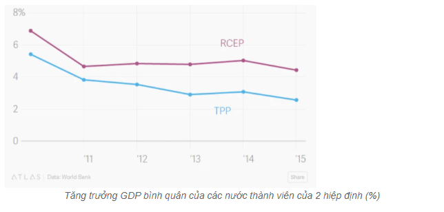 Thêm vào đó, nếu TPP bao gồm cả những tiêu chuẩn cao về lao động, môi trường, bản quyền… thì RCEP lại chủ yếu tập trung về vấn đề cắt giảm thuế cũng như thúc đẩy thương mại.