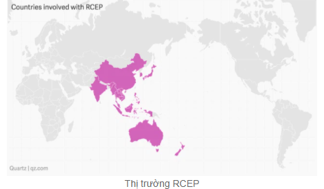 Hiệp định đối tác kinh tế toàn diện khu vực (RCEP) bao gốm 10 nước ASEAN và 6 nước khác như Trung Quốc, Ấn Độ, Nhật Bản, Hàn Quốc, Australia và New Zealand.