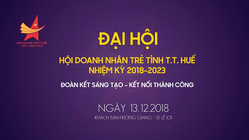 Kế thừa và phát huy truyền thống của Hội doanh nhân trẻ tỉnh Thừa Thiên Huế, Đại hội Hội doanh nhân trẻ tỉnhThừa Thiên Huế khóa VI nhiệm kỳ 2018 – 2023 sẽ diễn ra vào ngày 13/12/2018 với sự tham gia của toàn thể hội viên và khách mời.