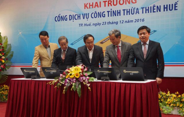 Sau thời gian nghiên cứu, xây dựng với sự hỗ trợ của Ngân hàng TMCP Công thương Việt Nam chi nhánh Huế và Viettel Huế về cung cấp dịch vụ thanh toán, nhắn tin trực tuyến và dịch vụ cấp thẻ điện tử doanh nghiệp. Cổng dịch vụ công tỉnh Thừa Thiên Huế, mô hình một cửa hiện đại và tích hợp, liên thông phù hợp kiến trúc chính quyền điện tử của tỉnh đã chính thức khai trương.